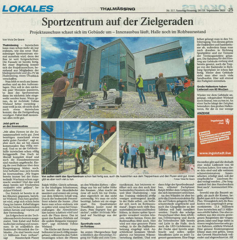 Mit großen Schritten nähern wir uns beim Bau des Sportzentrums in Thalmässing dem Richtfest. Die aktuellsten Bilder zum Baufortschritt finden Sie unter"Projekte -> Aktuelle Projekte -> Sportzentrum Thalmässing"